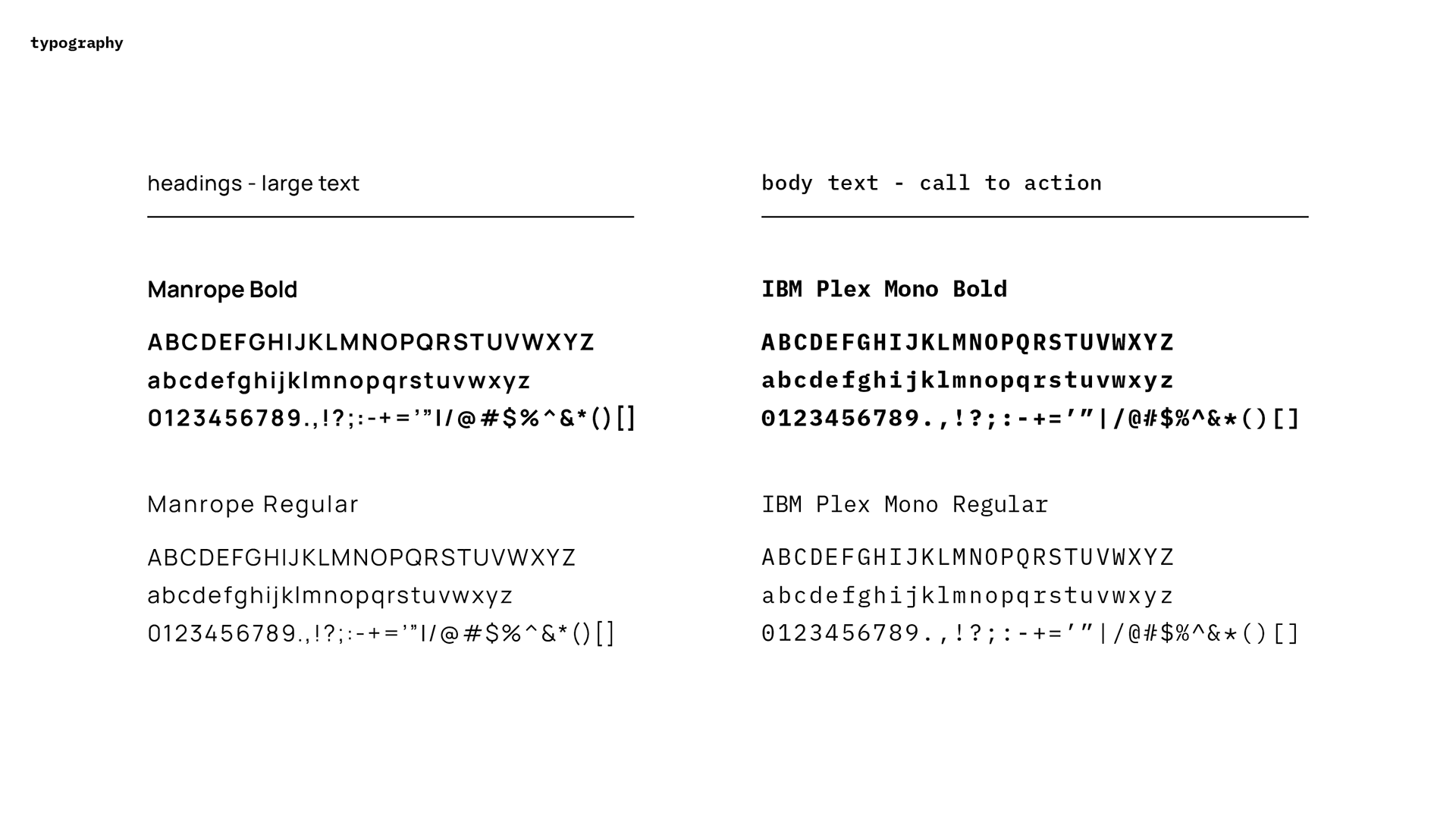 We relied on typography to convey an image of both reliability and technical expertise. Manrope for headings - big text and IBM Plex Mono for body text synergize to communicate the brand’s character.
